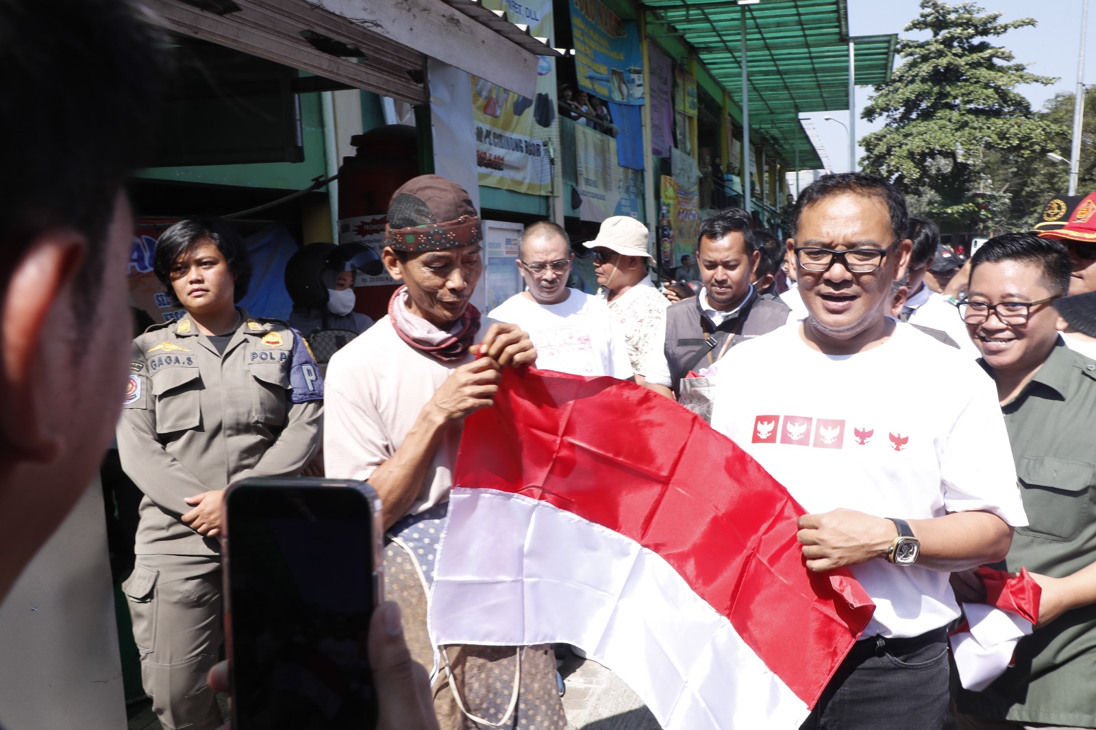 “Hari ini Pemerintah Kabupaten Bogor memberikan contoh. Kami juga mengajak masyarakat untuk memasang bendera merah putih di pekarangan rumahnya masing-masing,” kata Plt Bupati Bogor, Iwan Setiawan usai membagikan bendera merah putih di sekitaran Pasar Cibinong, Kabupaten Bogor.