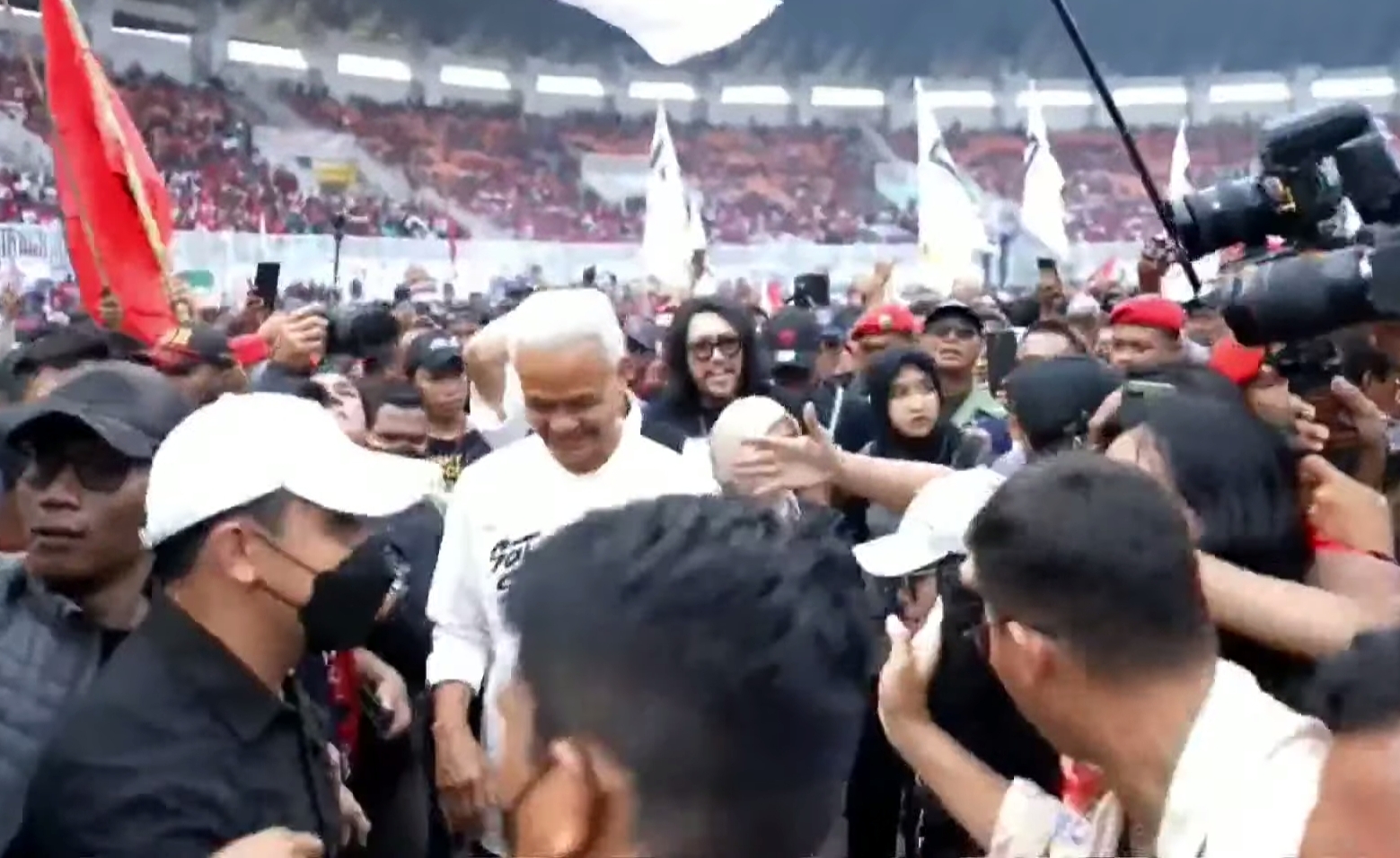 RUJUKANMEDIA.com – Calon Presiden (Capres) Ganjar Pranowo menyapa masyarakat Kabupaten Bogor di Stadion Pakansari, Cibinong, Jumat 9 Februari 2024.