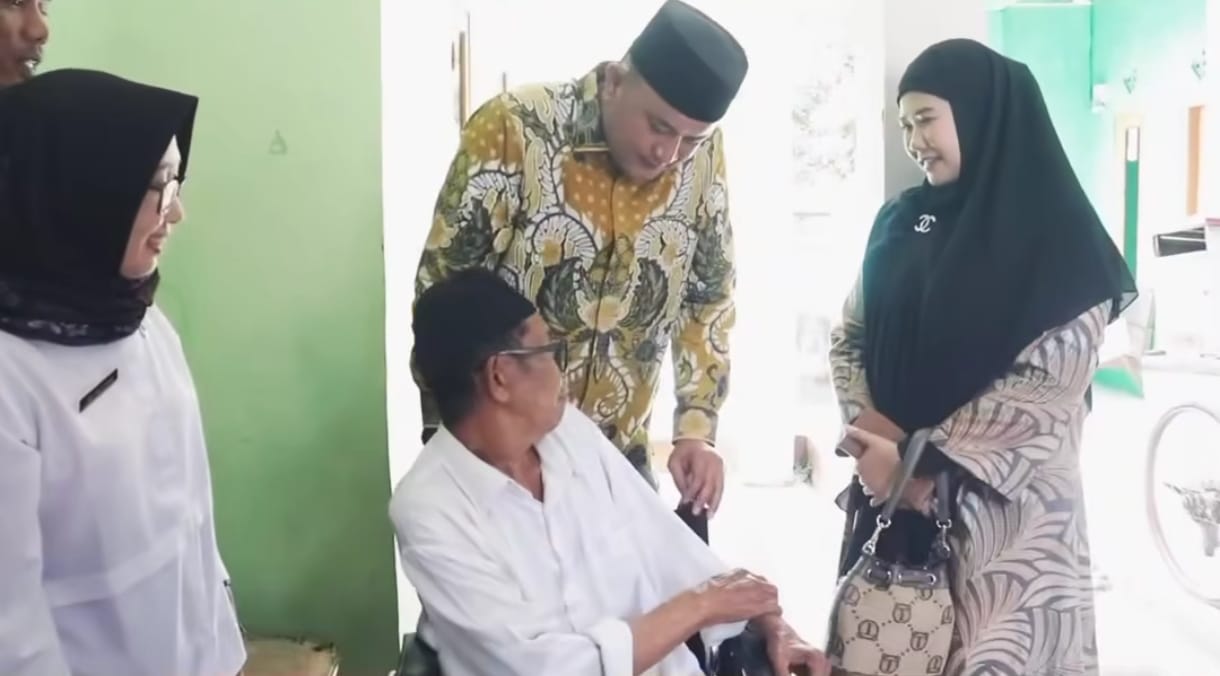 RUJUKANMEDIA.COM – Ketua DPRD Kabupaten, Rudy Susmanto memberikan kursi roda kepada sosok paru baya yang mirip dengan presiden ke-4 Abdurrahman Wahid alias Gus Dur di Desa Gunungsari, Kecamatan Pamijahan. Sosok yang mirip Gus Dur itu bernama Salahudin.