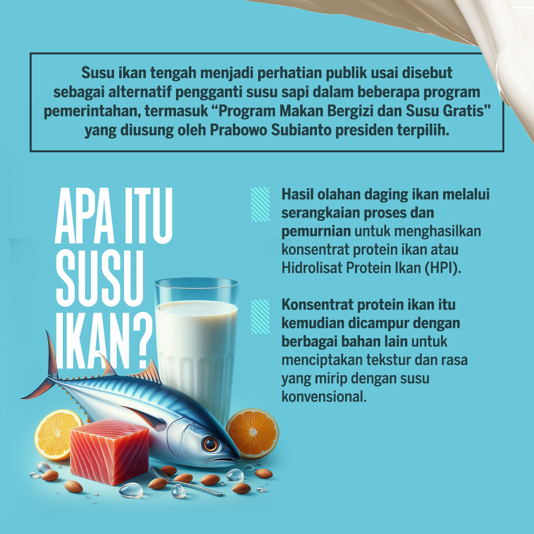 Agustus 2023 lalu, susu ikan pertama di Indonesia hasil kemitraan antara Koperasi Nelayan Mina Bahari (Indramayu) dengan PT Berikan Teknologi Indonesia diluncurkan di Indramayu. Inisiatif produksi hidrolisat protein ikan mulai digulirkan sejak 2016, dalam peringatan Hari Ikan Nasional.