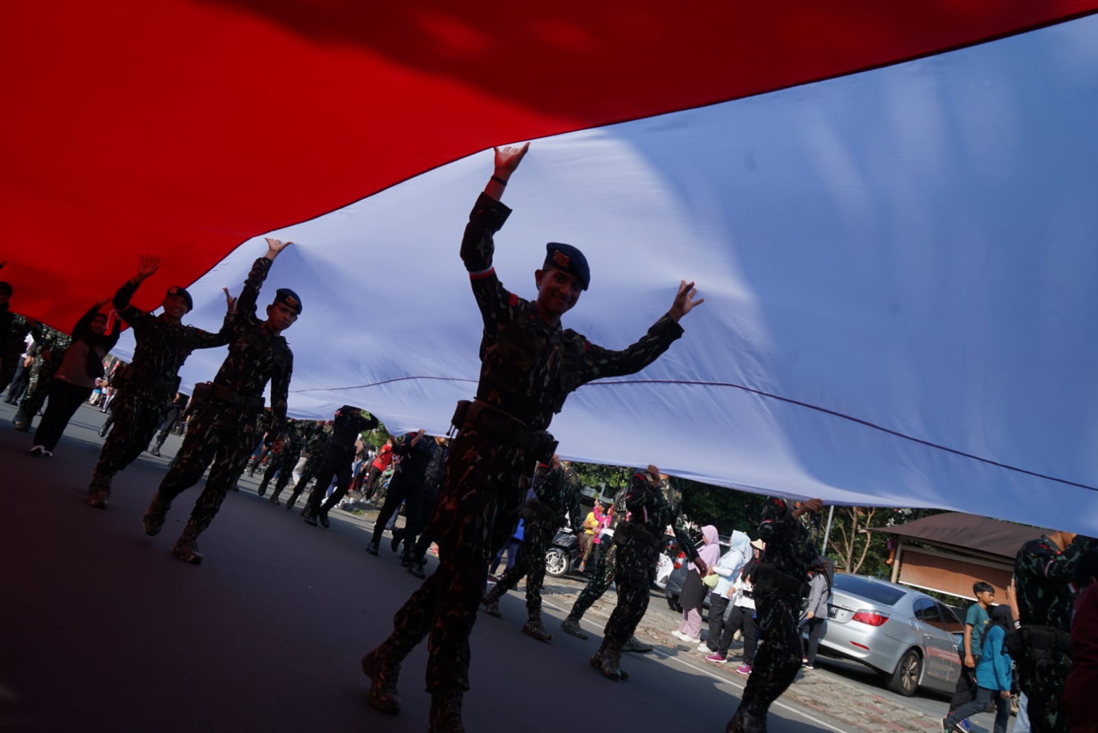 RUJUKANMEDIA.com – Bendera Merah Putih sepanjang 1,2 kilometer membentang di Kota Bogor dalam gelaran Festival Merah Putih (FMP), Minggu 10 Agustus 2025.