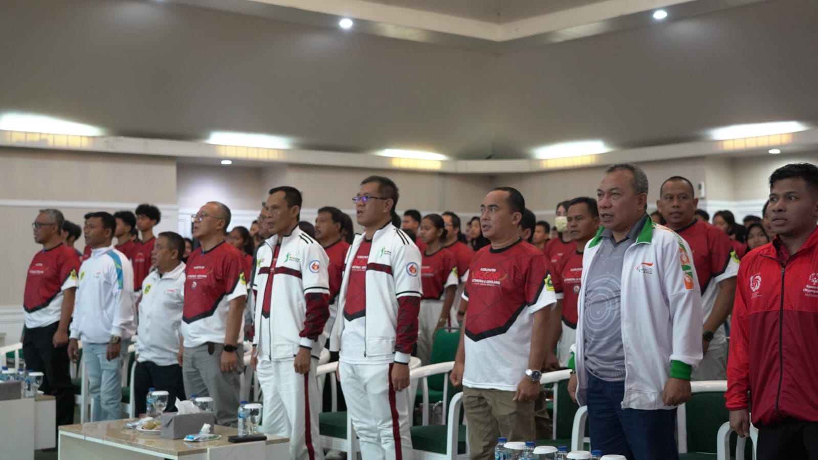 Pelepasan kontingen dilaksanakan di Ruang Serbaguna I, Sekretariat Daerah, Cibinong, Jumat (12/9). Hadir mendampingi Wabup Jaro Ade, Kepala Dinas Pemuda dan Olahraga beserta jajaran Pemerintah Kabupaten (Pemkab) Bogor. Hadi pula para ketua organisasi keolahragaan, Ketua NPCI, perwakilan KONI, Ketua SoIna, para atlet, pelatih, dan official.