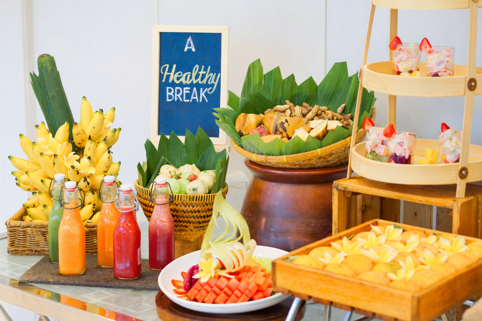 Dalam satu sesi coffee break, tamu disuguhkan dua pilihan menu sekaligus, yakni healthy dan cheat, yang dapat dipilih sesuai selera.